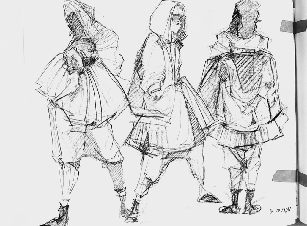 Print ideations andn snippets of figure drawing pages.